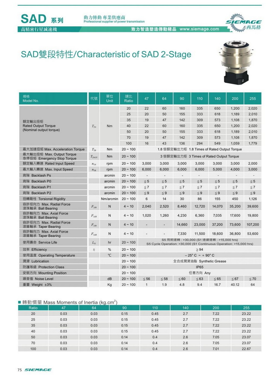 西马格SAD减机减速比: